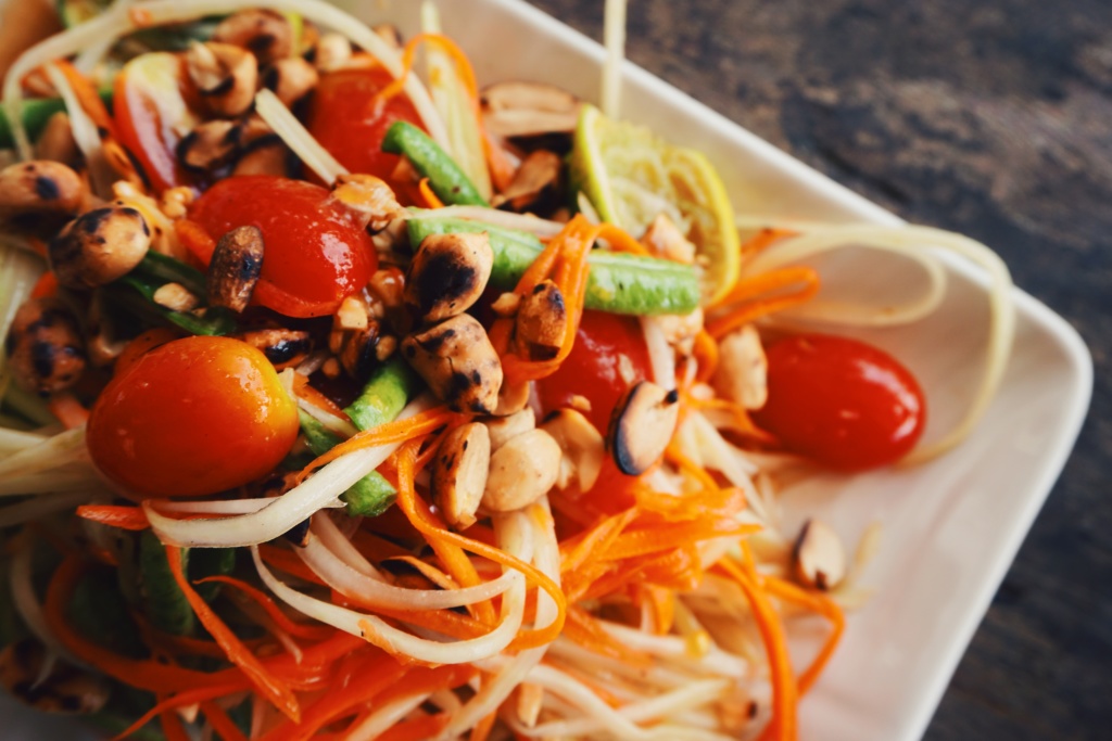 deckt. Der Papaya-Salat in Thailand ist ein kulinarischer Höhenflug, der auch meinen Blutzucker ordentlich ankurbelt. Ich konnte einfach nicht abschätzen, wie viele Kohlenhydrate in diesem „Salat“ steckten und dementsprechend wollten auch die Boli dafür einfach nicht passen. Bis ich einen Kochkurs machte und selbst genötigt wurde, haufenweise Zucker in die Sauce zu schaufeln. Danach wusste ich Bescheid und war Papaya-Profi! 😉